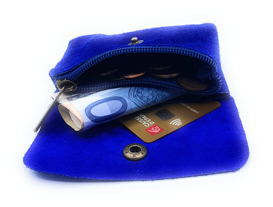 Porte-monnaie Aponi cuir suédé / irisé ~ Bleu royale