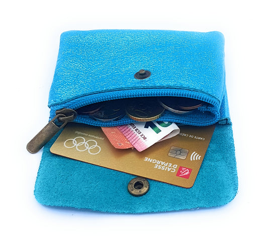 Porte-monnaie Aponi cuir irisé italien ~ Turquoise