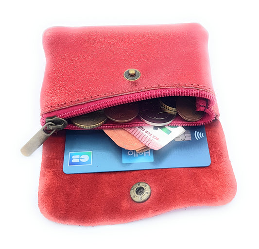 Porte-monnaie Aponi cuir irisé italien ~ Rouge