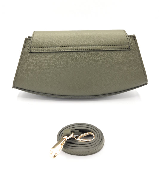 Prix en baisseSac à bandoulière demi-lune en cuir Paco ~ Kaki