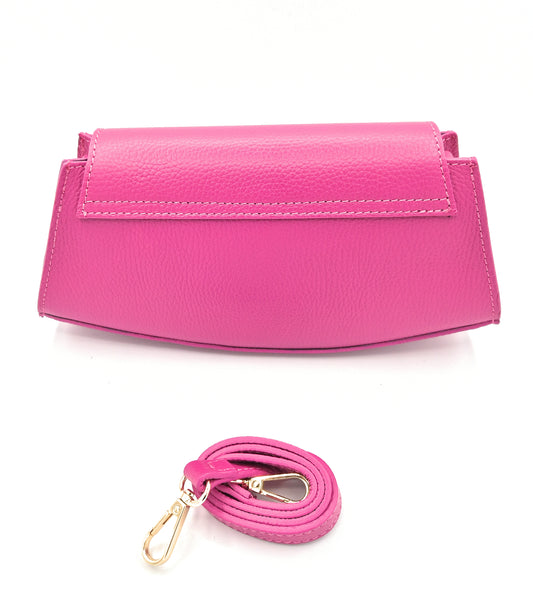 Prix en baisseSac à bandoulière demi-lune en cuir Paco ~ Fushia