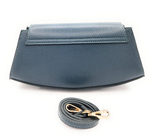 Sac à bandoulière demi-lune en cuir Paco ~ Bleu canard