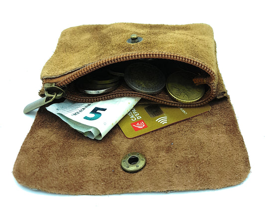 Porte-monnaie Aponi cuir suédé / irisé ~ Bronze / Camel
