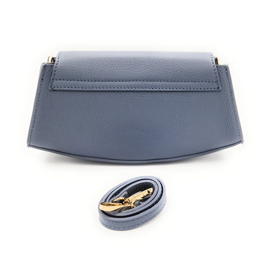 Sac à bandoulière demi-lune en cuir Paco ~ Bleu clair