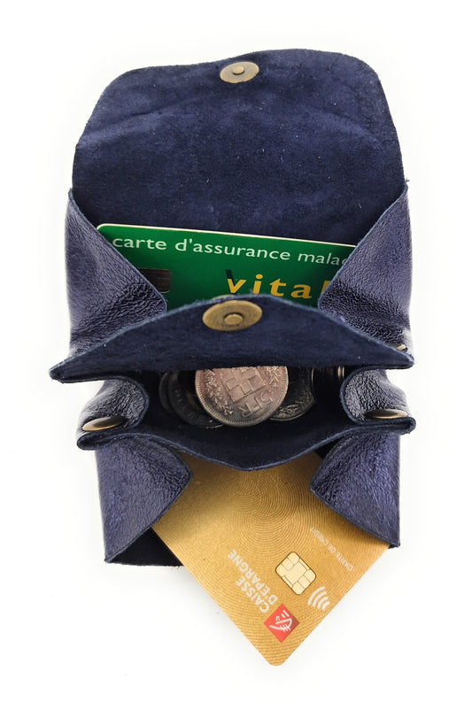 Porte-monnaie en cuir irisé Etania ~ Bleu nuit