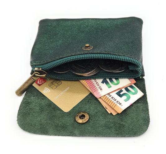 Porte-monnaie Aponi cuir irisé italien ~ Vert émeraude