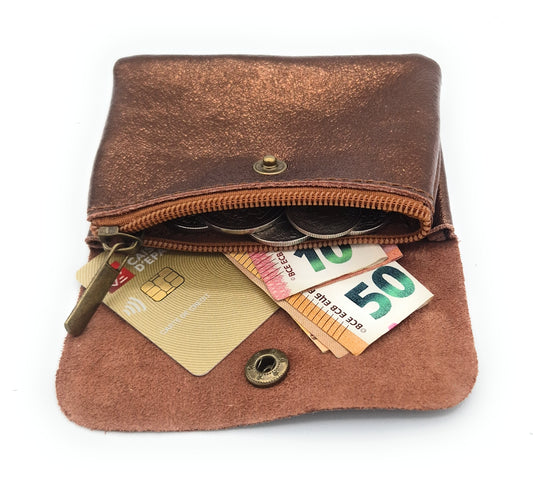 Porte-monnaie Aponi cuir irisé italien ~ Bronze