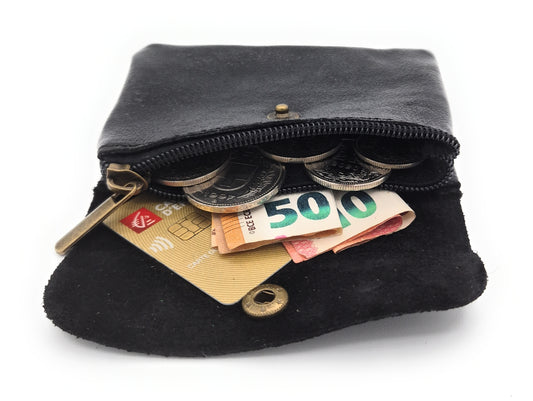 Porte-monnaie Aponi cuir irisé italien ~ Noir