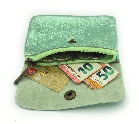 Porte-monnaie Aponi cuir irisé italien ~ Vert amande