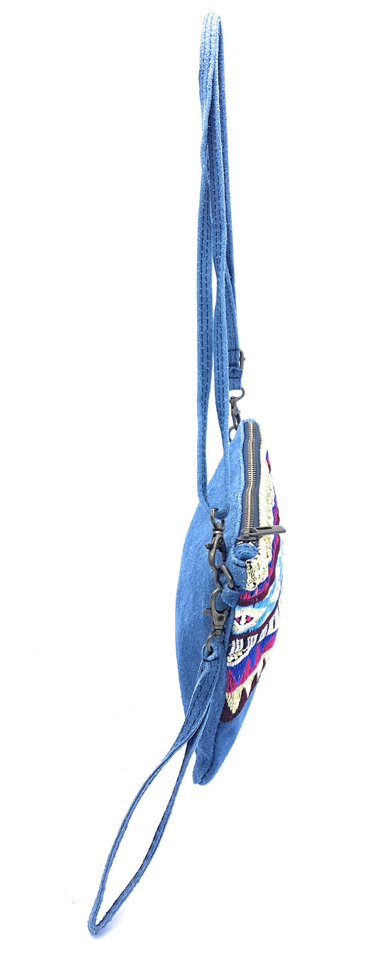 Namata suede leather clutch bag with embroidery ~ Denim blue
