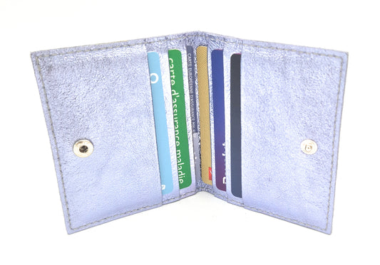 Porte-cartes Asha en cuir irisé italien ~ Étain