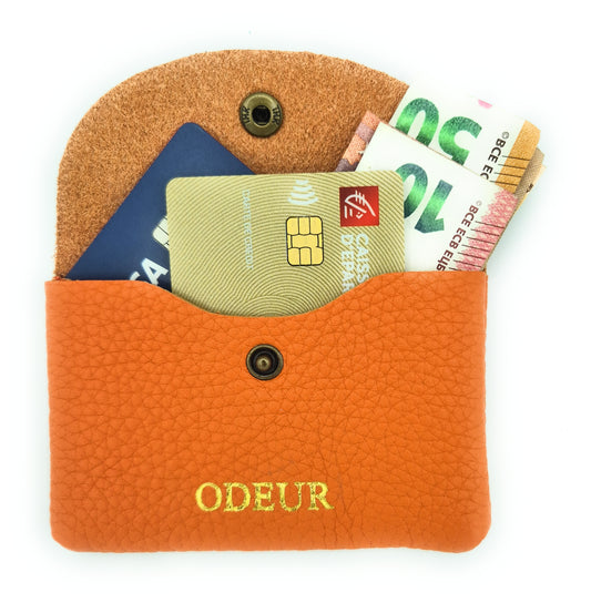 Porte-cartes Asha en cuir irisé italien ~ Orange