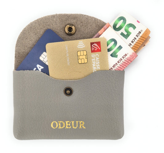 Porte-cartes Kanda en cuir ~ Bleu gris