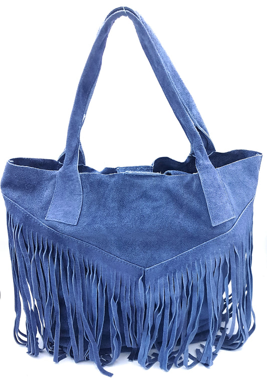Naya Fringed Suede Leather Shopper Bag ~ Royal Blue