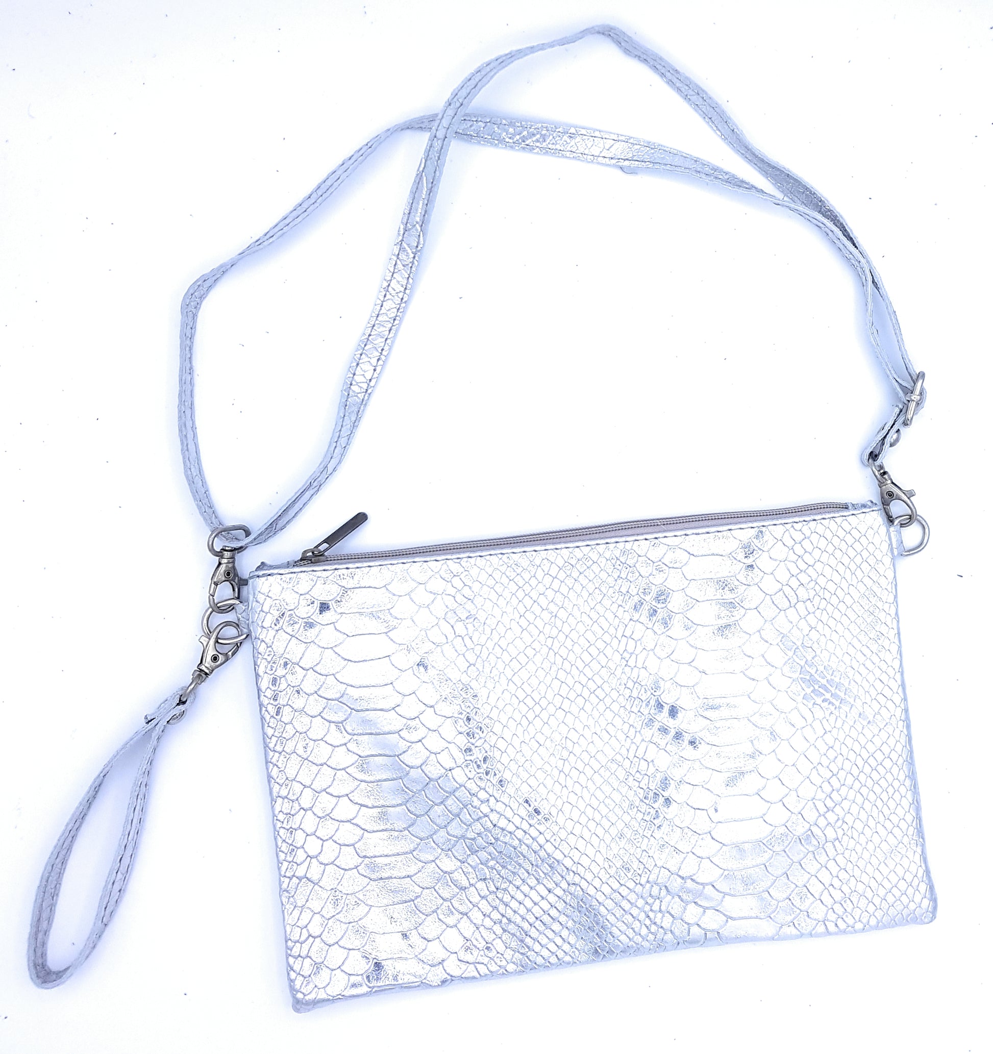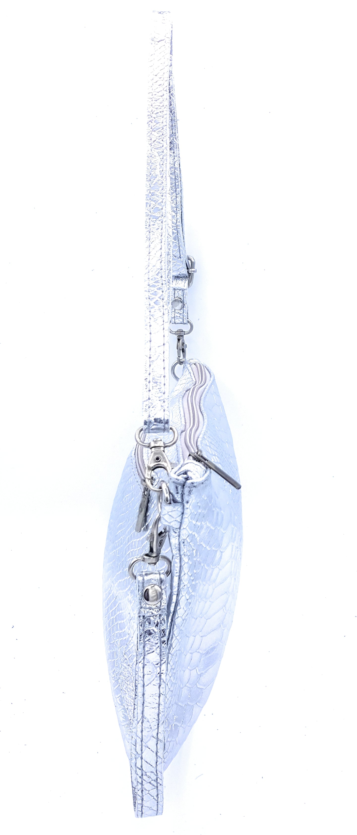 Snake Iridescent Leather Clutch Bag ~ Silver