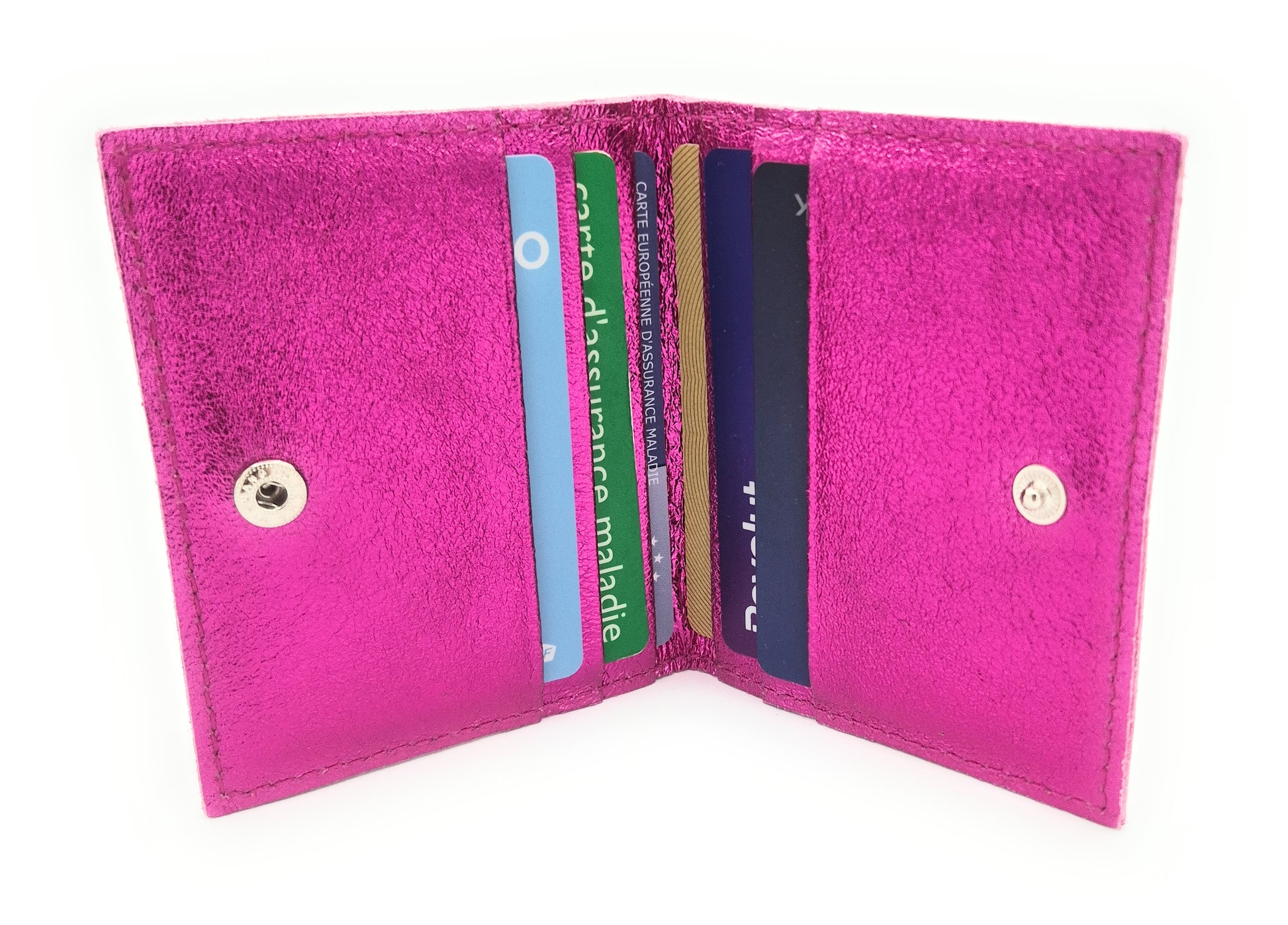 Porte-cartes Asha en cuir irisé italien ~ Fuchsia