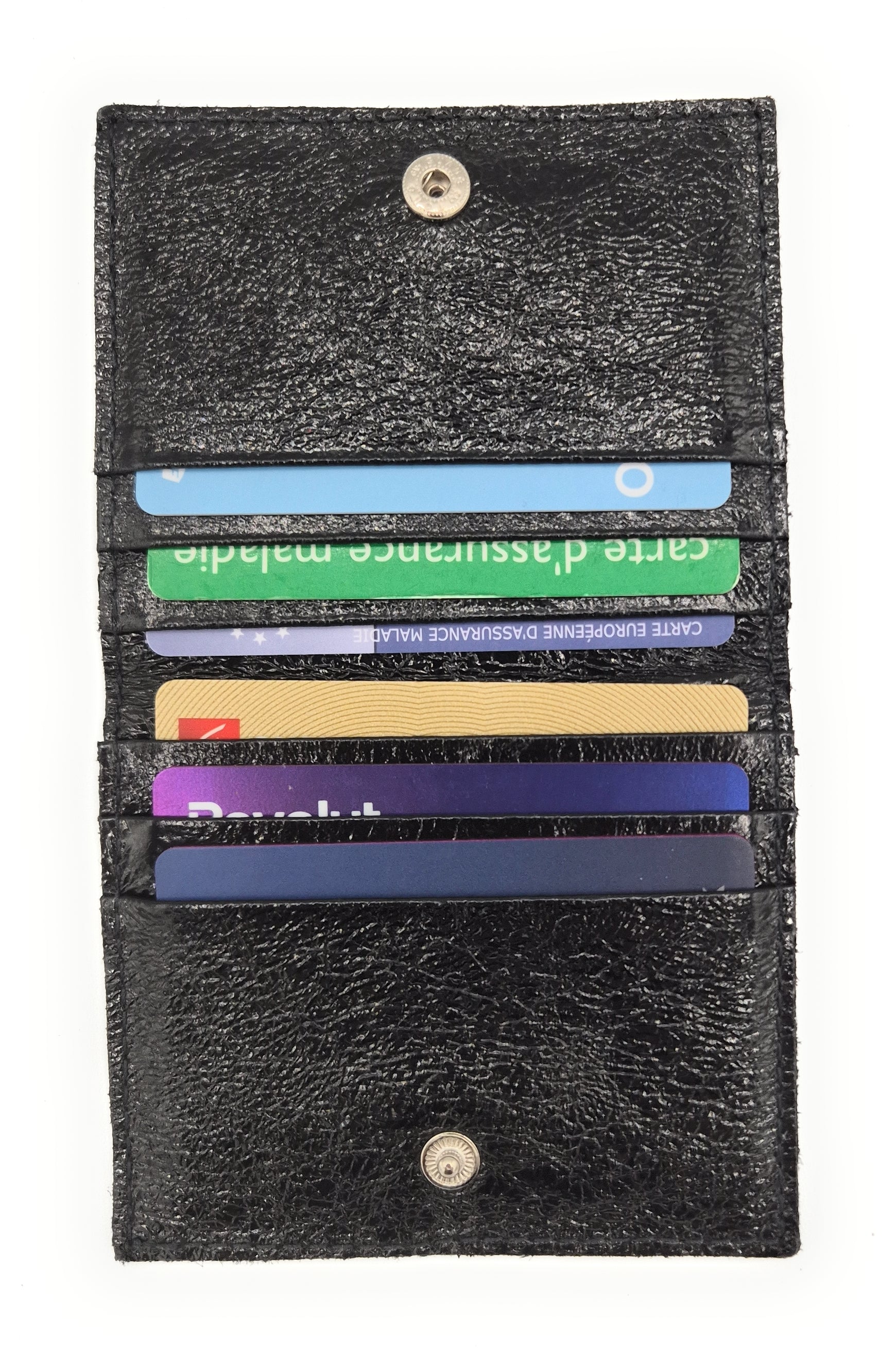 Porte-cartes Asha en cuir irisé italien ~ Noir