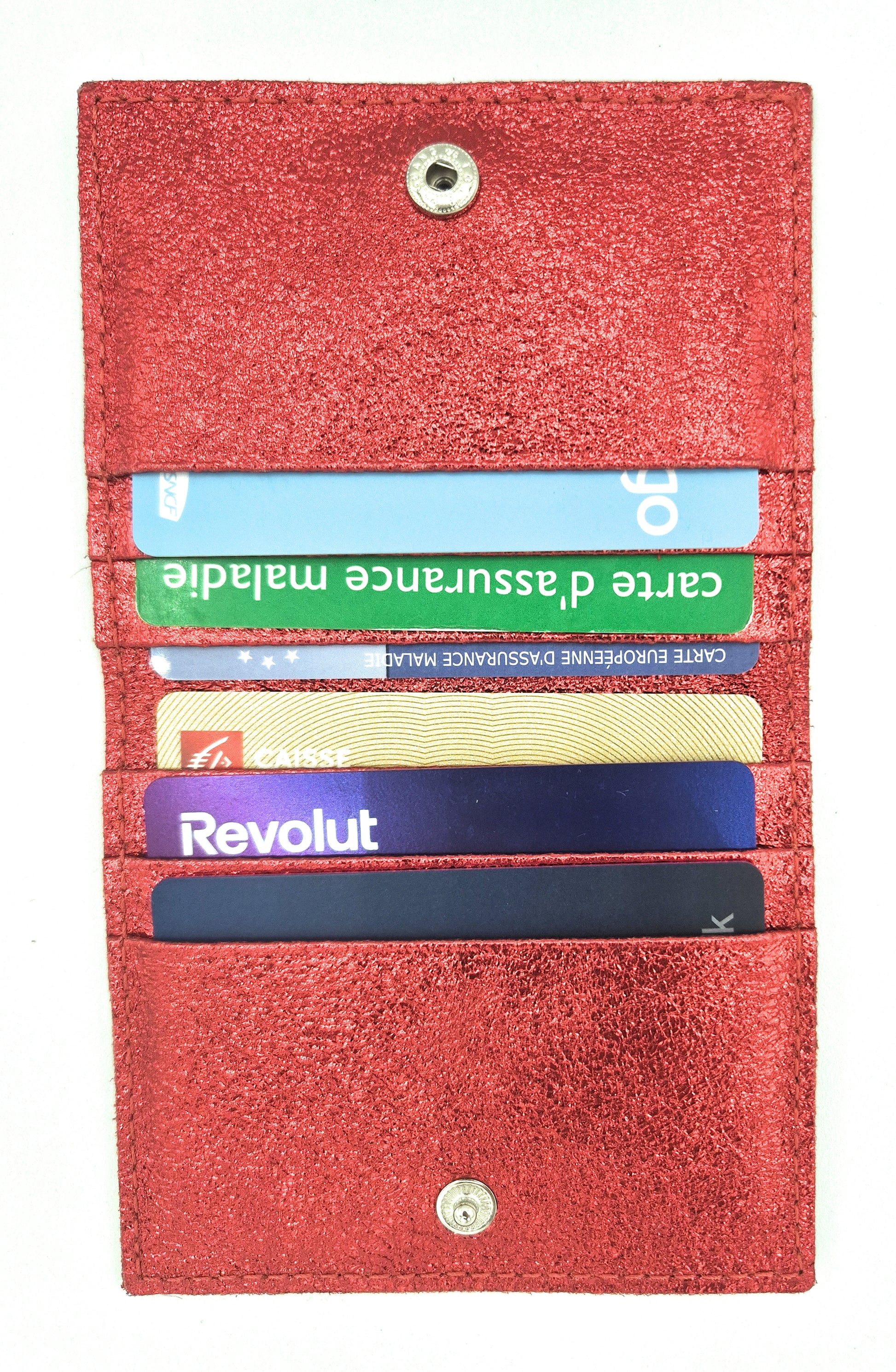 Porte-cartes Asha en cuir irisé italien ~ Rouge