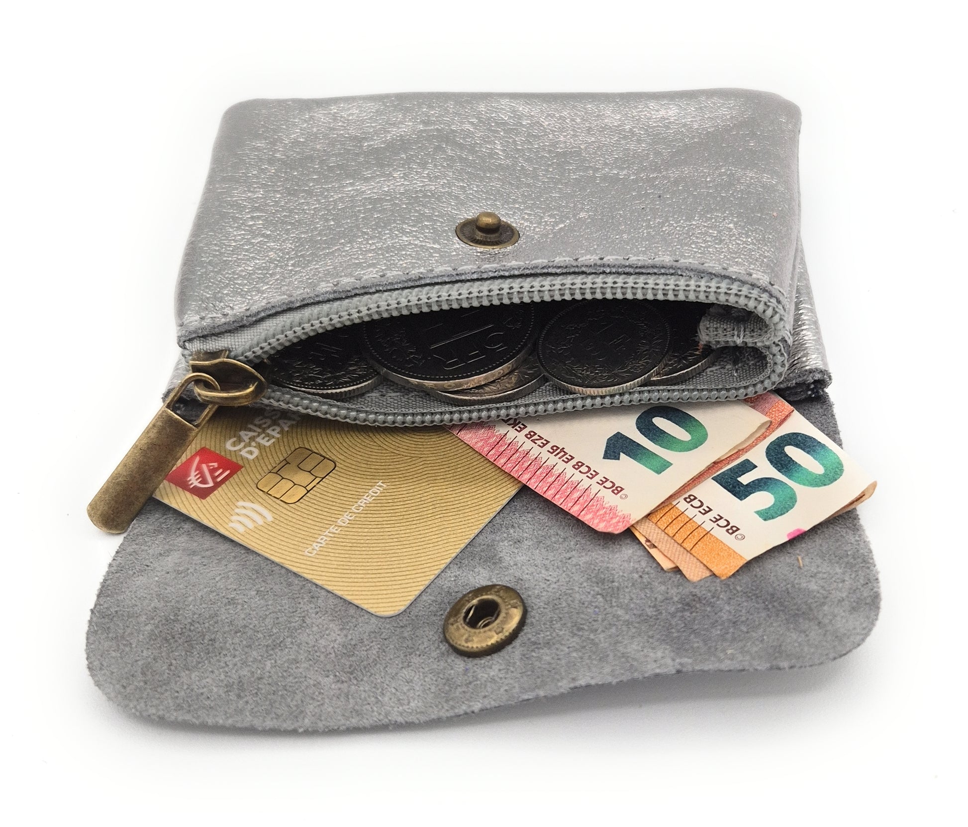 Porte-monnaie Aponi cuir irisé italien ~ Argenté
